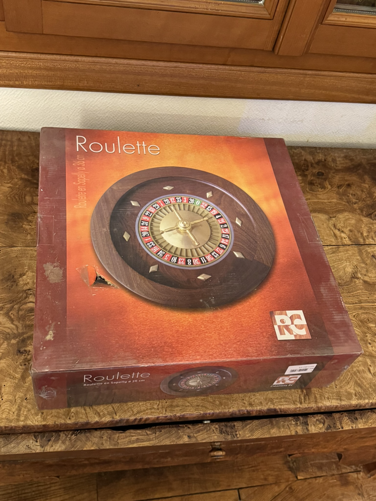 Roulette neuve en bois Exotique (Sapelly), diamètre 36 cm