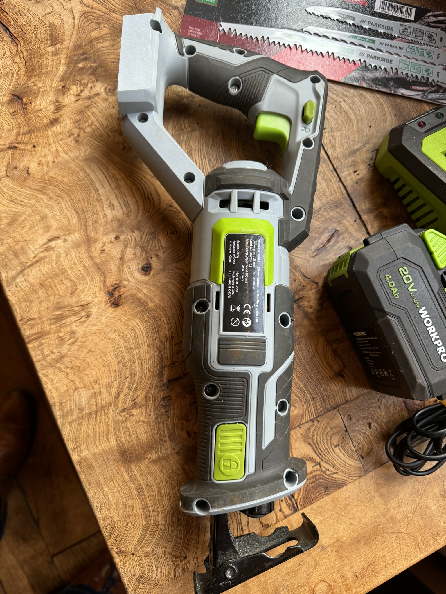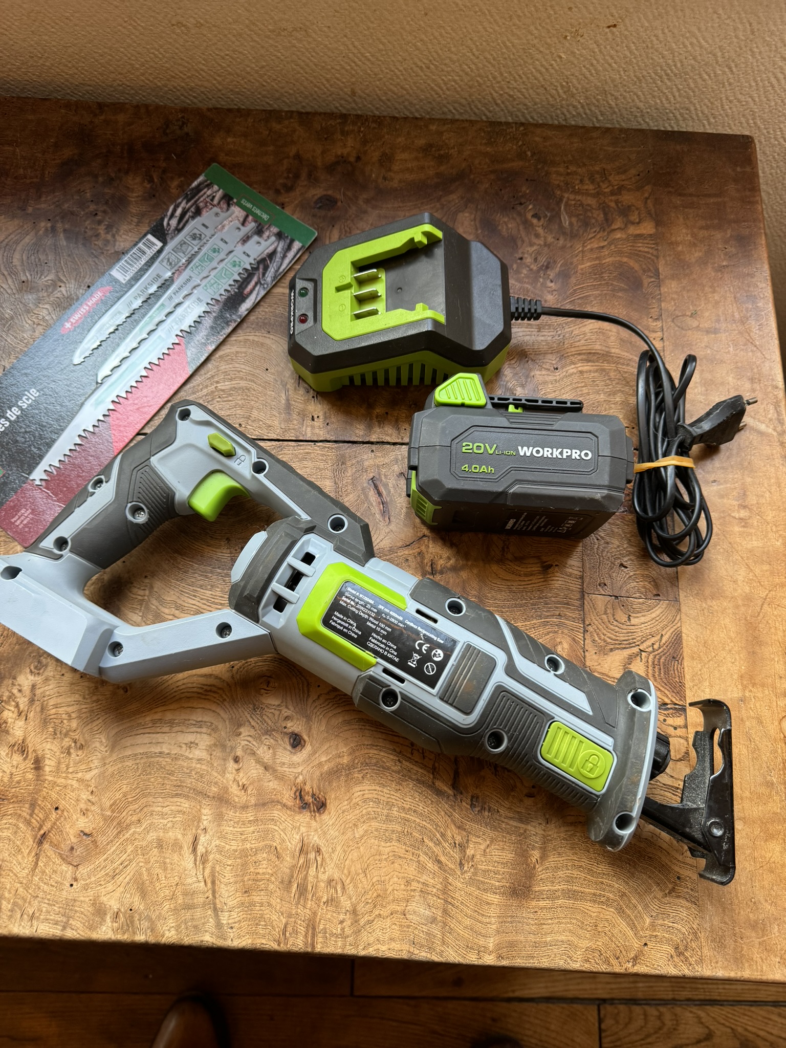 WORKPRO Scie Sabre sans Fil 20V, Scie Sabre à Batterie 4,0Ah, Scie Alternative sans Fil, Idéal pour Couper Bois, Métal et PVC, Batterie et Chargeur Inclus